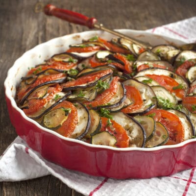Вариантов приготовления Рататуя очень много. Этот рецепт креативно выглядит и хорош на вкус. По-летнему яркое, вкусное и очень ароматное блюдо из запеченных овощей.