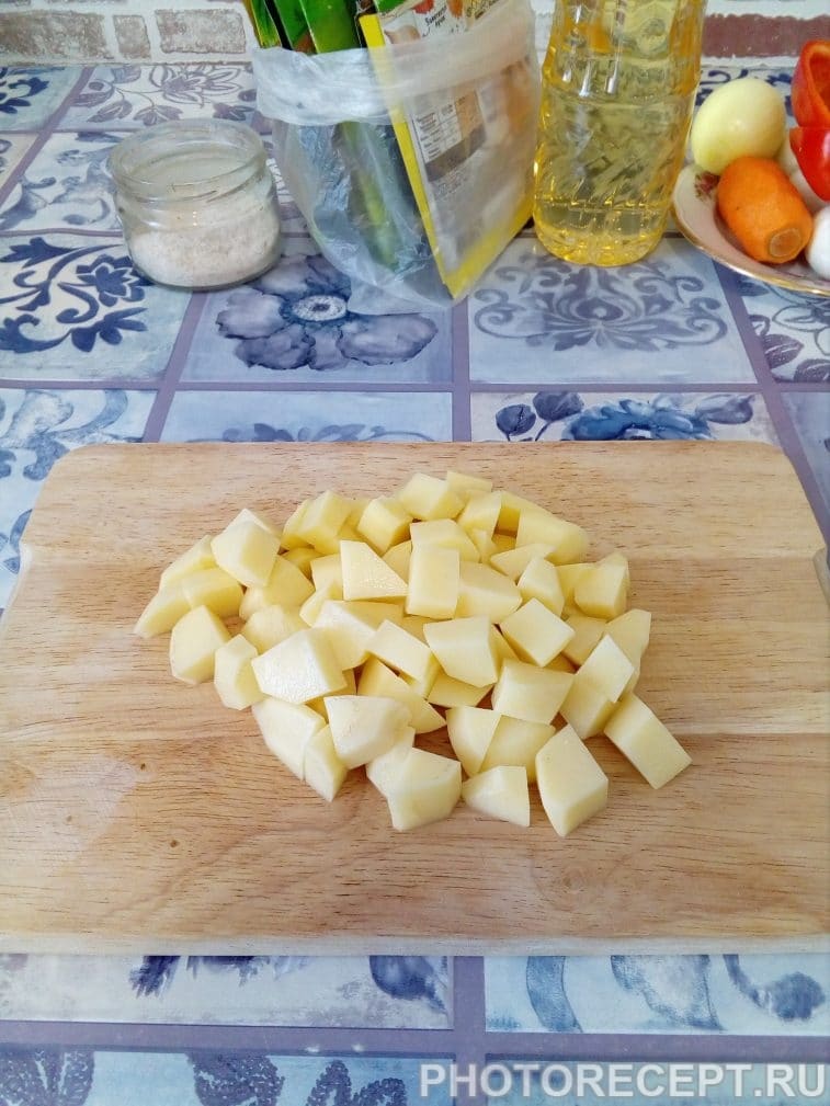 Когда бульон готов опускаем картофель и варим 15 минут (до готовности картофеля).