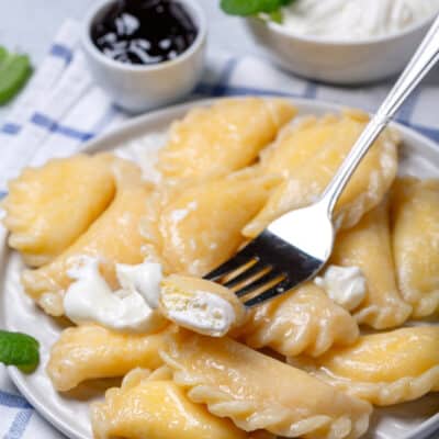 Вареники являются традиционным украинским блюдом, которое подается на многих застольях, свадьбах и других торжествах. Вареники готовятся крайне быстро и просто и такое блюдо получается очень вкусным и ароматным. Существует два вида приготовления вареников. Вареники на пару готовятся с помощью паровой бани, за счет чего значительно увеличиваются в объеме, становятся пышными и сочными. Затем такие вареники обжаривают на сливочном масле и подают со сметаной или жаренным луком. Простые вареники готовят с помощью обваривания в подсоленной воде и подаются с различными соусами или сметаной к столу. Начинки для вареников могут быть самыми разными. Сладкие вареники готовят с творогом и изюмом, с вишней или клубникой. Закусочные вареники начиняют фаршем, капустой, шпинатом и сиром, а также картофелем и грибами.